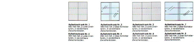 Hier sehen Sie unsere Auswahl von Schränken, Aufsatzschränken, Hängeschränken und Hängeregalen.