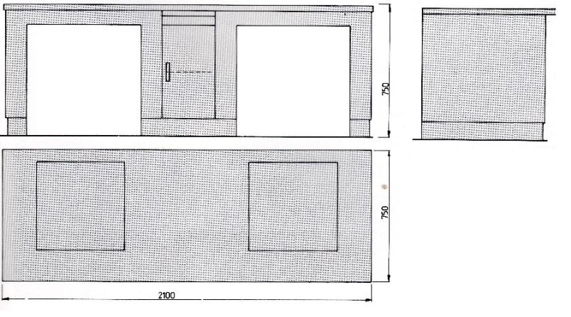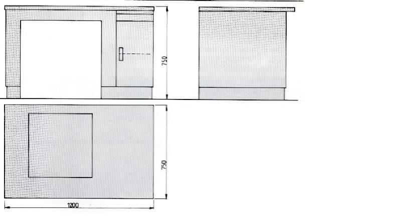 - 1200 x 750 x 750 mm + zusätzlicher Unterbau